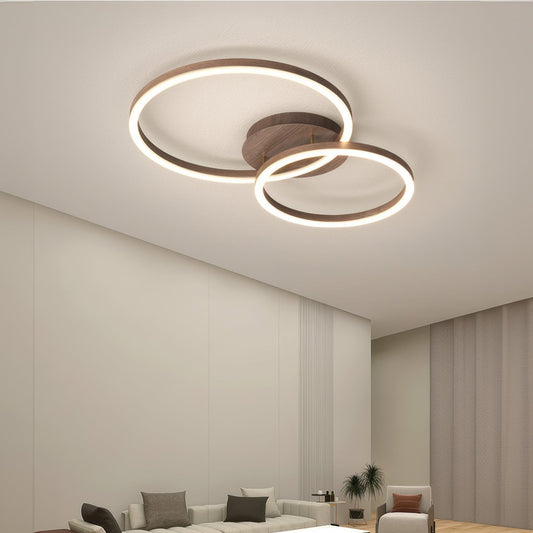 Moderne LED Deckenleuchte mit 3 Ringen – Minimalistische Deckenlampe mit Holz-Optik für Wohnzimmer, Esszimmer & Büro