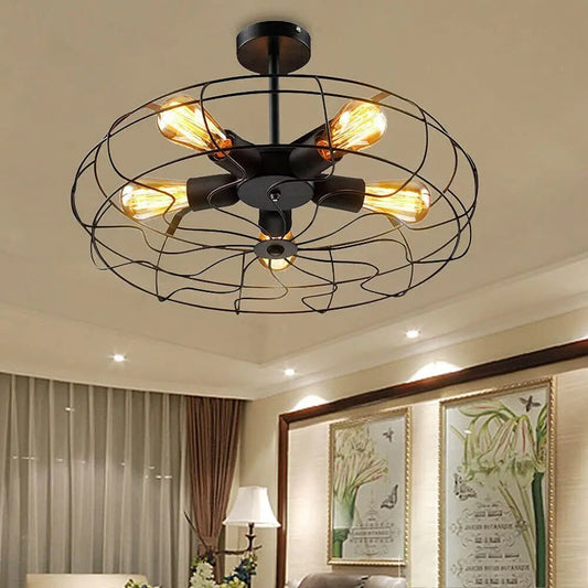 Retro Eisenkäfig Kronleuchter – Industrieller Deckenleuchter für Wohnzimmer oder Loft