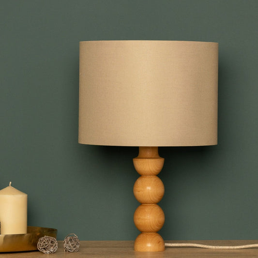 Minimalistische Holztischlampe mit Stoffschirm - Skandinavisches Design für Wohnzimmer & Schlafzimmer, natürliche Beleuchtung