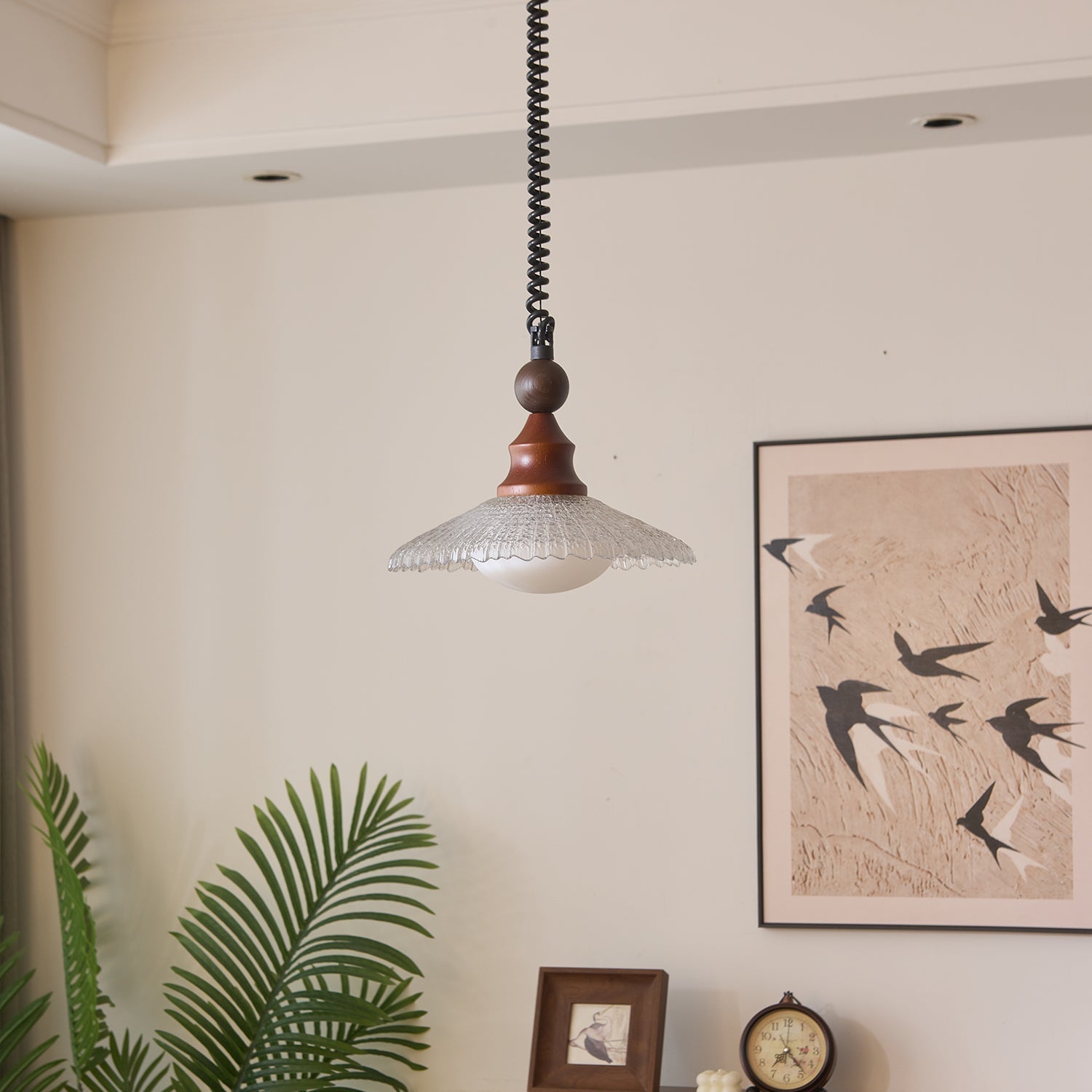 Retro Pendelleuchte mit gefaltetem Glasschirm & Holzdetails – Vintage Hängelampe für Küche, Esszimmer & Wohnzimmer – Höhenverstellbar & stilvoll