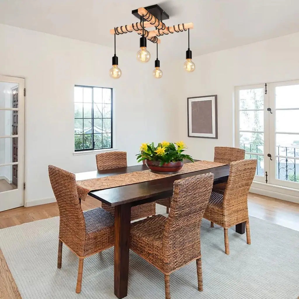 ForgeGlo Industrieller Kronleuchter aus Holz und Metall – Vintage Deckenleuchte mit Retro-Edison-Glühbirnen