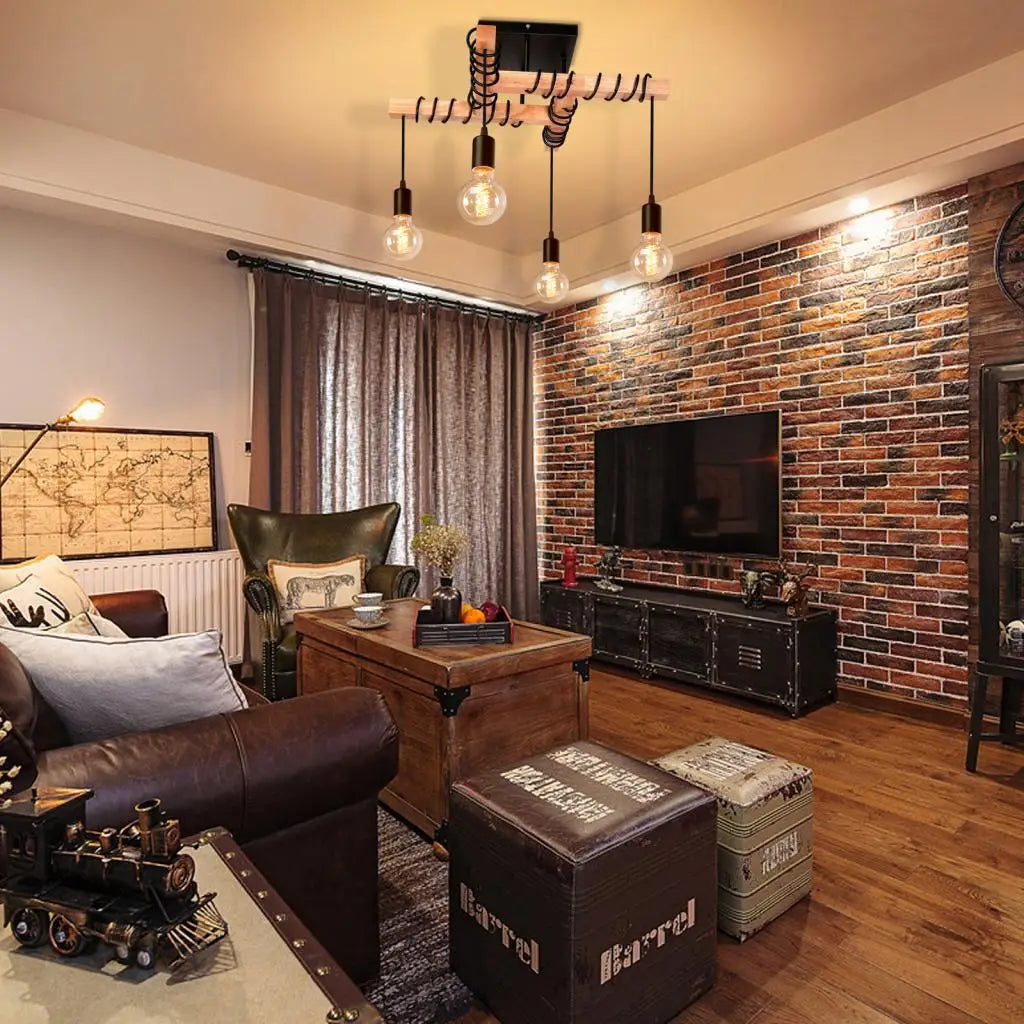 Verleihen Sie Ihrem Zuhause Charakter und Tiefe mit dem ForgeGlo industriellen Kronleuchter aus Holz und Metall. Diese außergewöhnliche Deckenleuchte kombiniert rustikale Materialien mit einem markanten Retro-Stil und wird sofort zum Blickfang in jedem Raum. Die warmen Lichtakzente der Edison-Glühbirnen schaffen eine einladende Atmosphäre, die nostalgisch und gleichzeitig stilvoll wirkt.