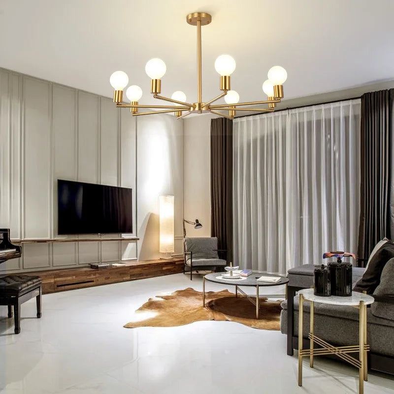 Verleihen Sie Ihrem Raum mit diesem stilvollen Kronleuchter eine luxuriöse Note. Der goldene Metallrahmen und die modernen, kugelförmigen Lampen sorgen für ein harmonisches Ambiente und bringen Ihre Wohnräume zum Strahlen. Ideal für moderne und minimalistische Interieurs, fügt sich dieser Kronleuchter perfekt in Ihr Zuhause ein.