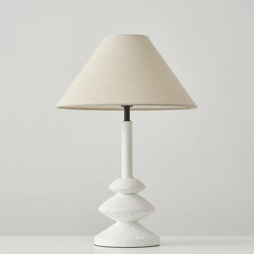 Tischlampe mit Stoffschirm und Steinsockel – Natürlicher Boho-Stil für Schlafzimmer, Wohnzimmer & Büro