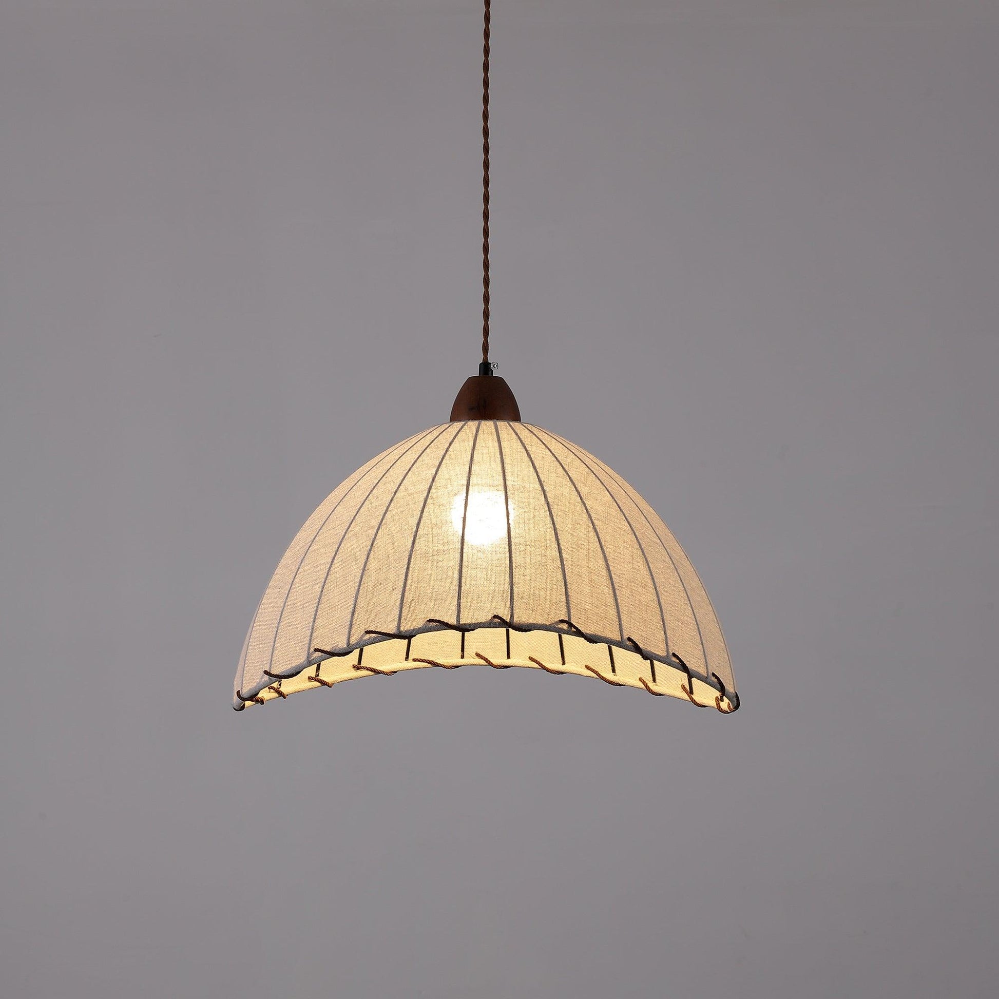 Ein Hauch von Nostalgie trifft auf moderne Eleganz: Diese Pendelleuchte im Vintage-Stil vereint warme Beleuchtung mit einem gemütlichen Design. Der fein strukturierte Stoffschirm mit schwarzen Ziernähten erinnert an klassische Sonnenschirme und bringt eine sanfte, wohnliche Atmosphäre in dein Zuhause.